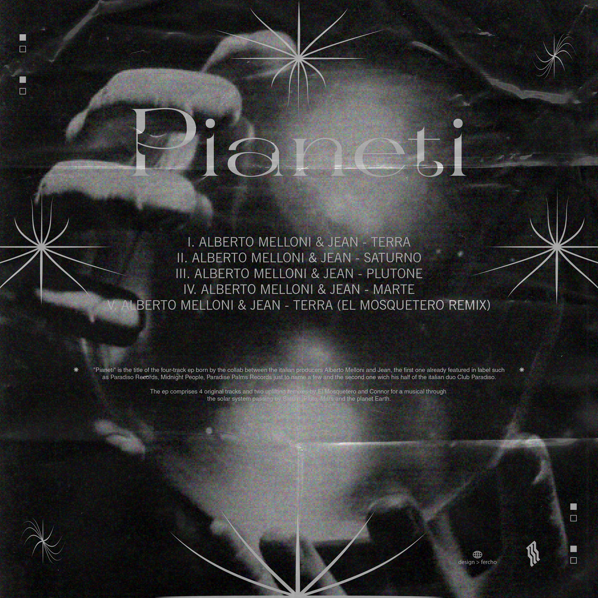 Hoy, como DJ y productor, Alberto Melloni continúa su proyecto en solitario produciendo nueva música en algún lugar entre el Disco, el Italo, el Afro, el Techno y el Rock. Por su parte, Jean es la mitad del dúo Club Paradiso, también cofundador de Raibano Records. Juntos aterrizan en Maleante Records para presentar Pianeti —“planeta”, en español—, el título del extended play de cuatro pistas nacido de su colaboración.