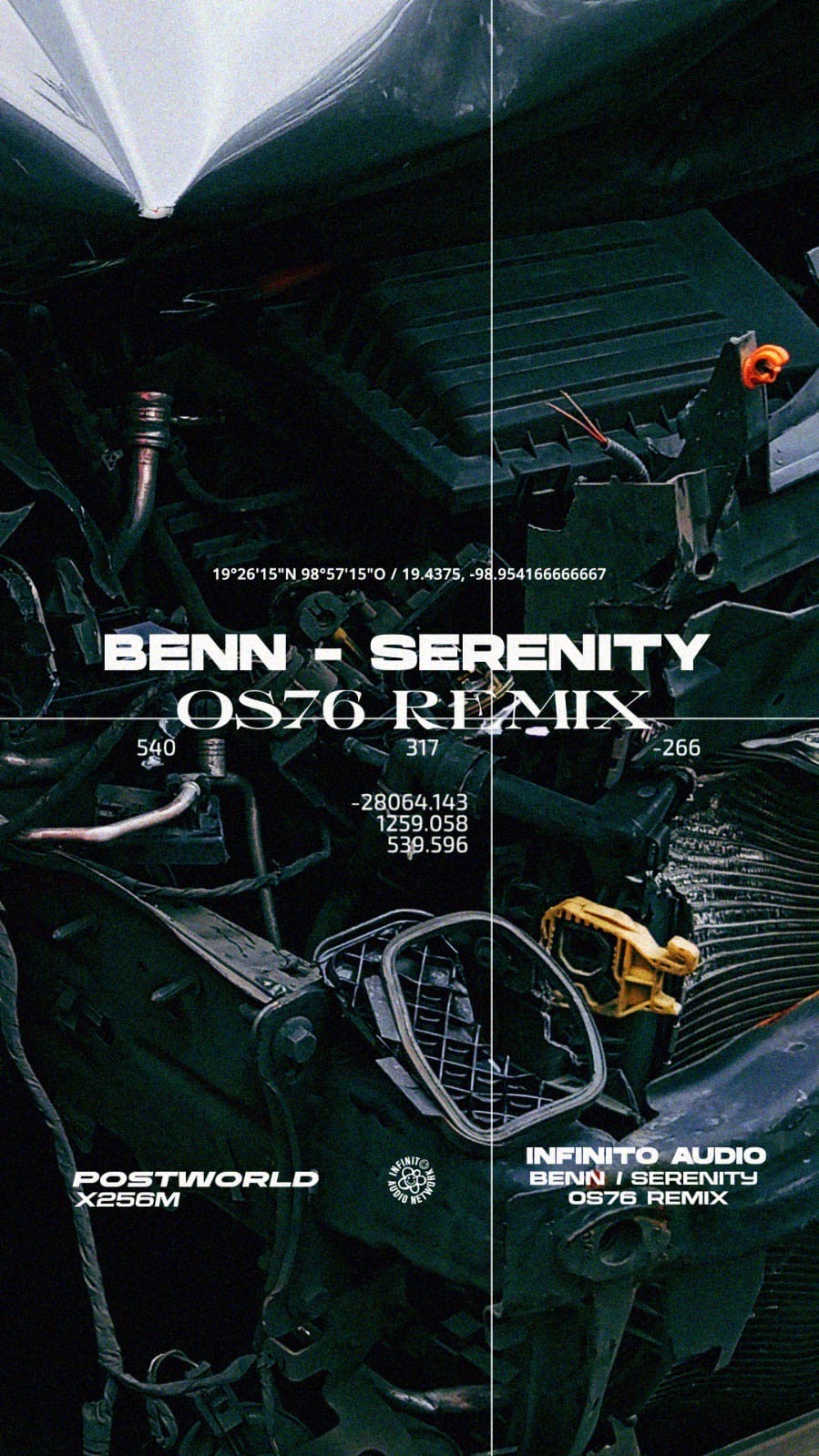 Serenity‘s original mix plays with serene sounds at the same time as exciting nervousness and restlessness, in a fresh and agile sound mix. With back and forth and broken sounds, the structure that emerges is impressive, full of zephyrs. OS76‘s remix imposes darkness and mysteriousness with more spaced breaks between notes, resulting in deep breaths, which can reach the last gasp. This also imbues the structure with darkness and unassailable recesses.